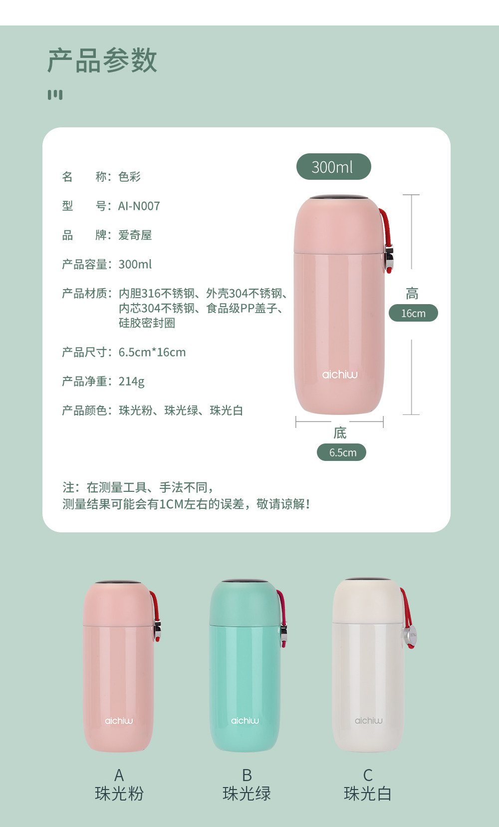 商品名称:爱奇屋 色彩保温杯 AI-N007