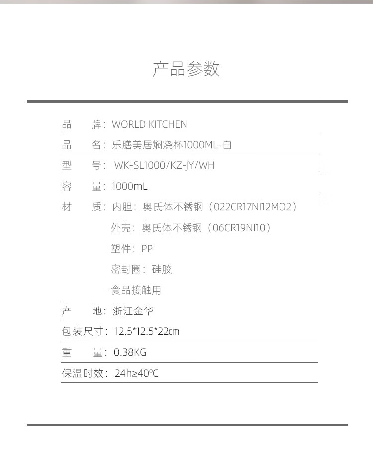 商品名称:康宁 乐膳美居焖烧杯1000ml-白 WK-SL1000/KZ-JY/WH
