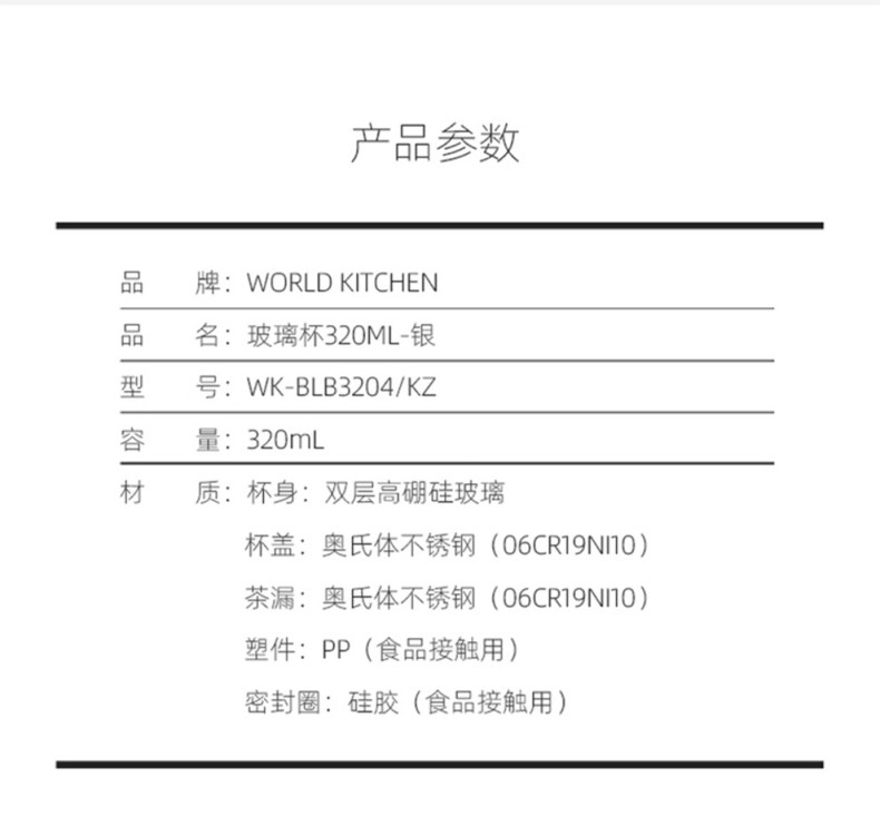 商品名称:康宁 玻璃杯320ML-银 WK-BLB3204/KZ