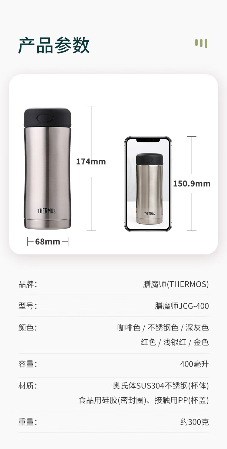 商品名称:膳魔师 THERMOS 真空保温杯 400ml JCG-400