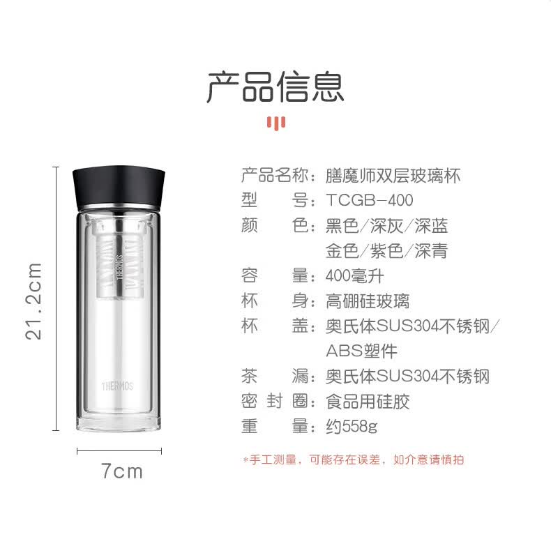 商品名称:THERMOS膳魔师 双层玻璃杯 TCGB-400 400ml