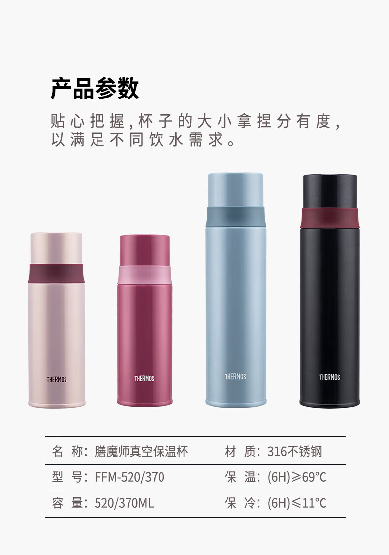 商品名称:THERMOS膳魔师 真空保温杯 FFM-370S 370ml