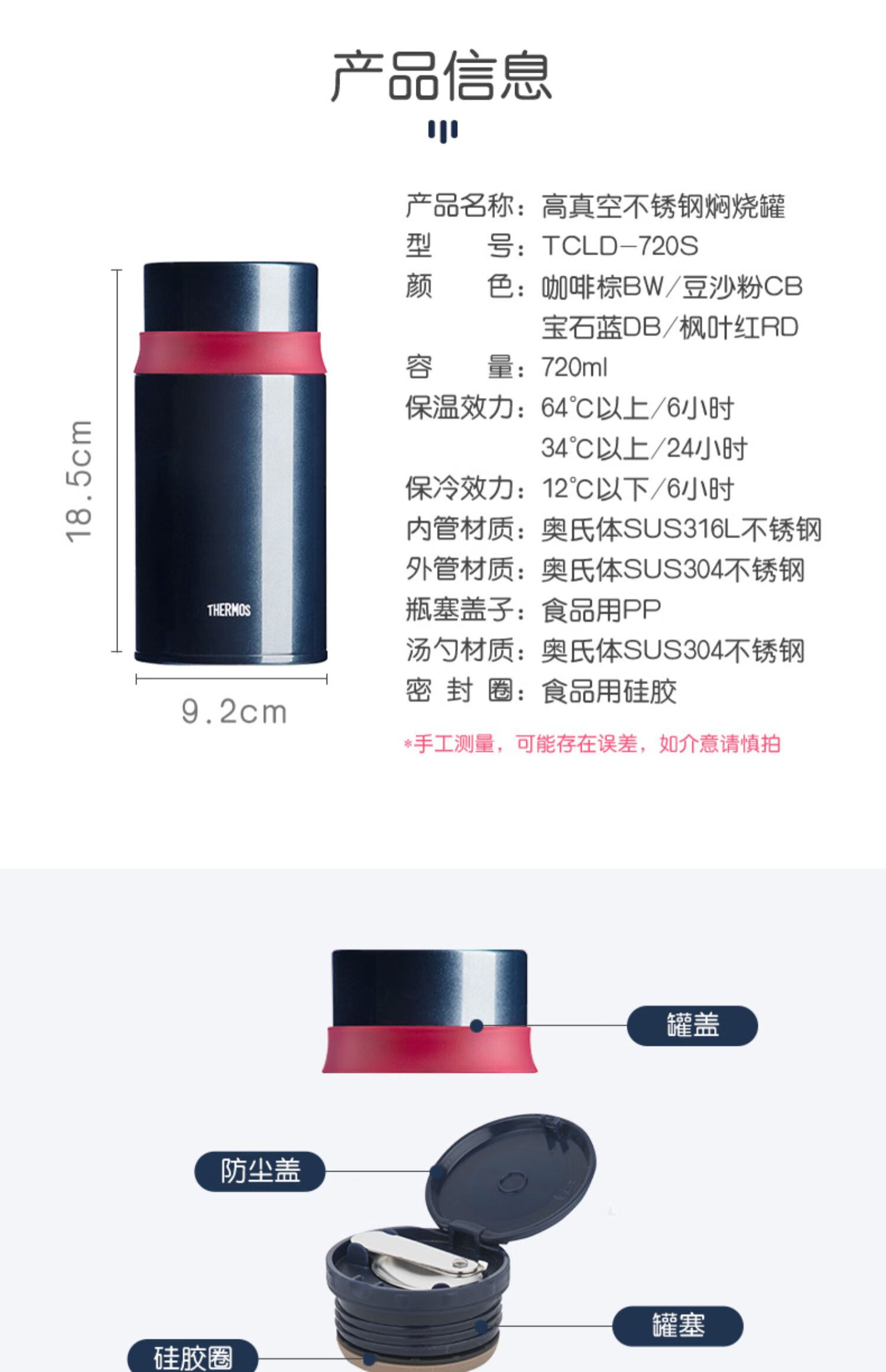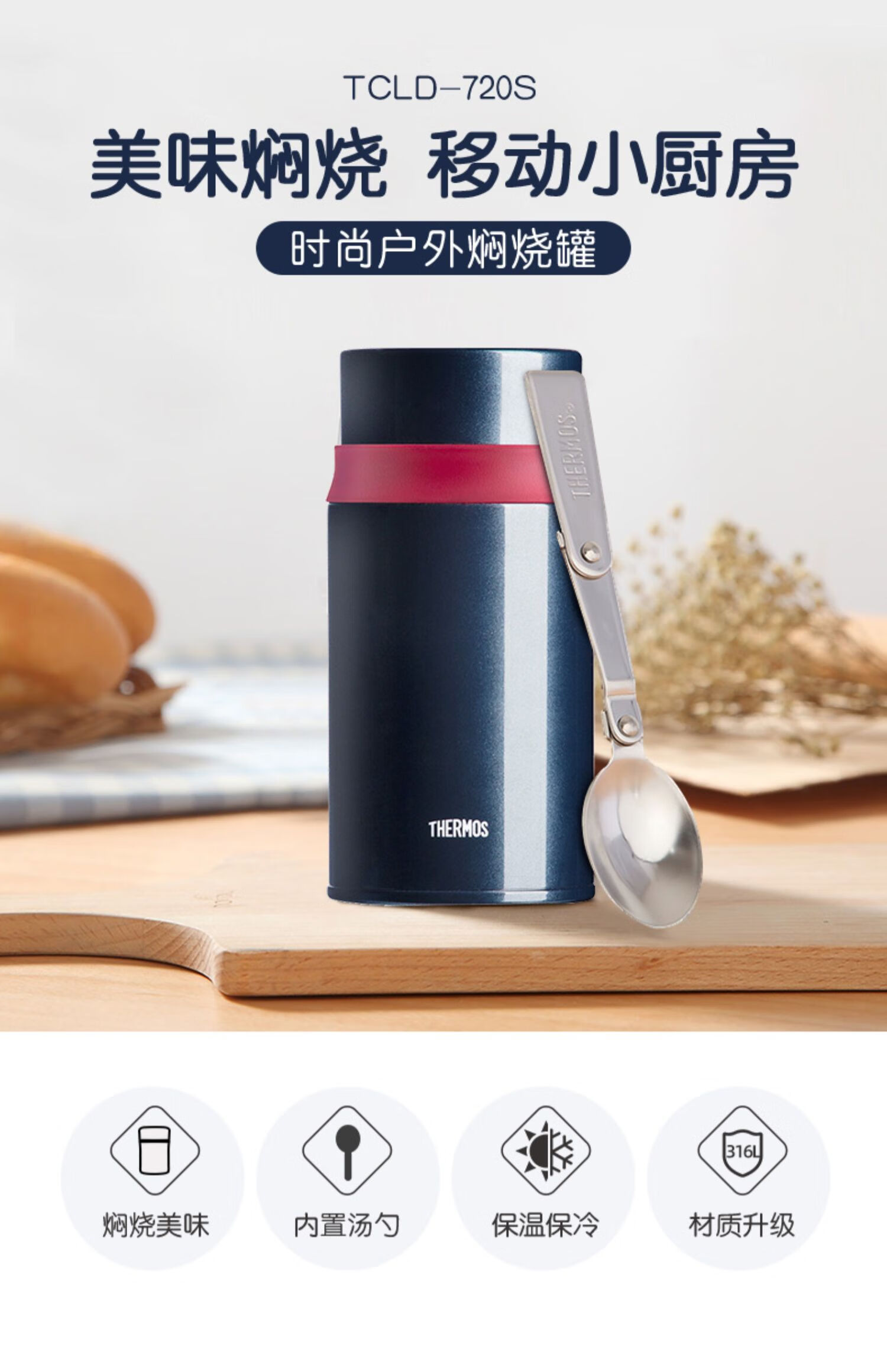 商品名称:膳魔师(THERMOS)不锈钢焖烧杯 TCLD-720S 720ml