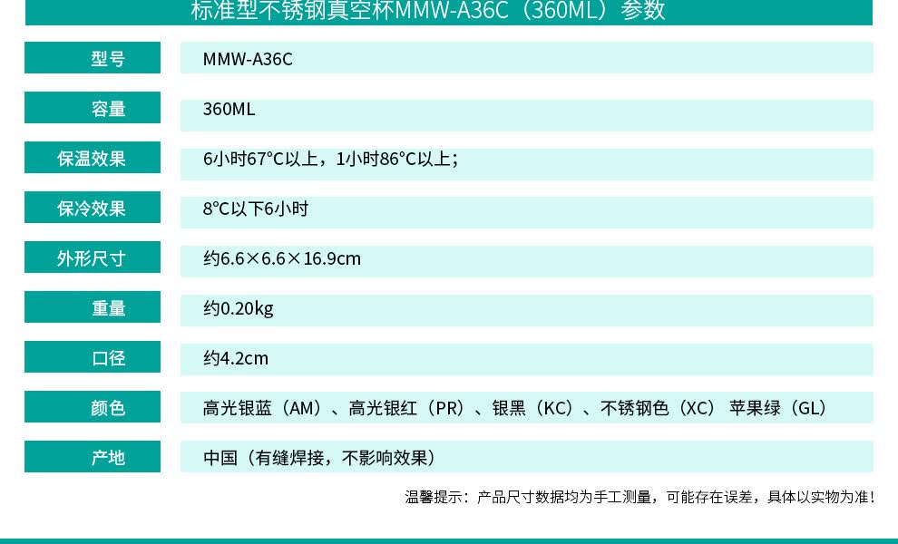 商品名称:虎牌(TIGER) 保温杯 MMW-A36C 360ml