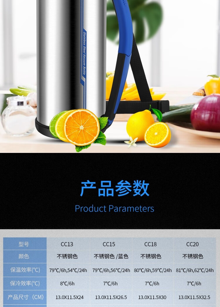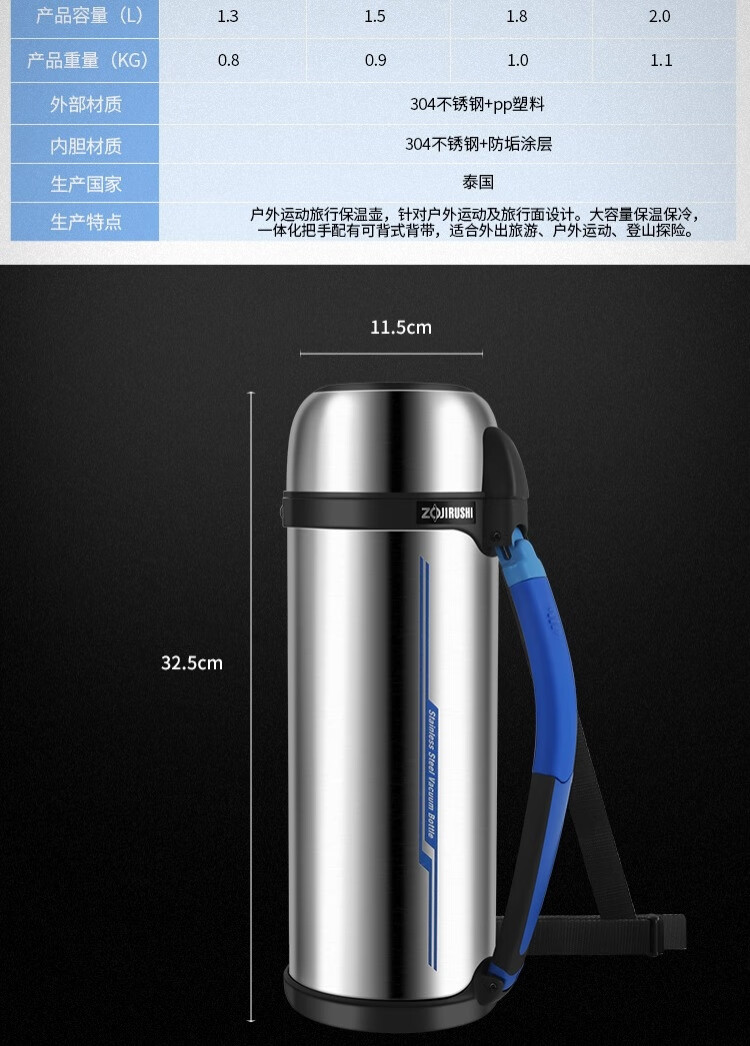 商品名称:象印 大容量不锈钢304保温杯 SF-CC18-XA 1.8L