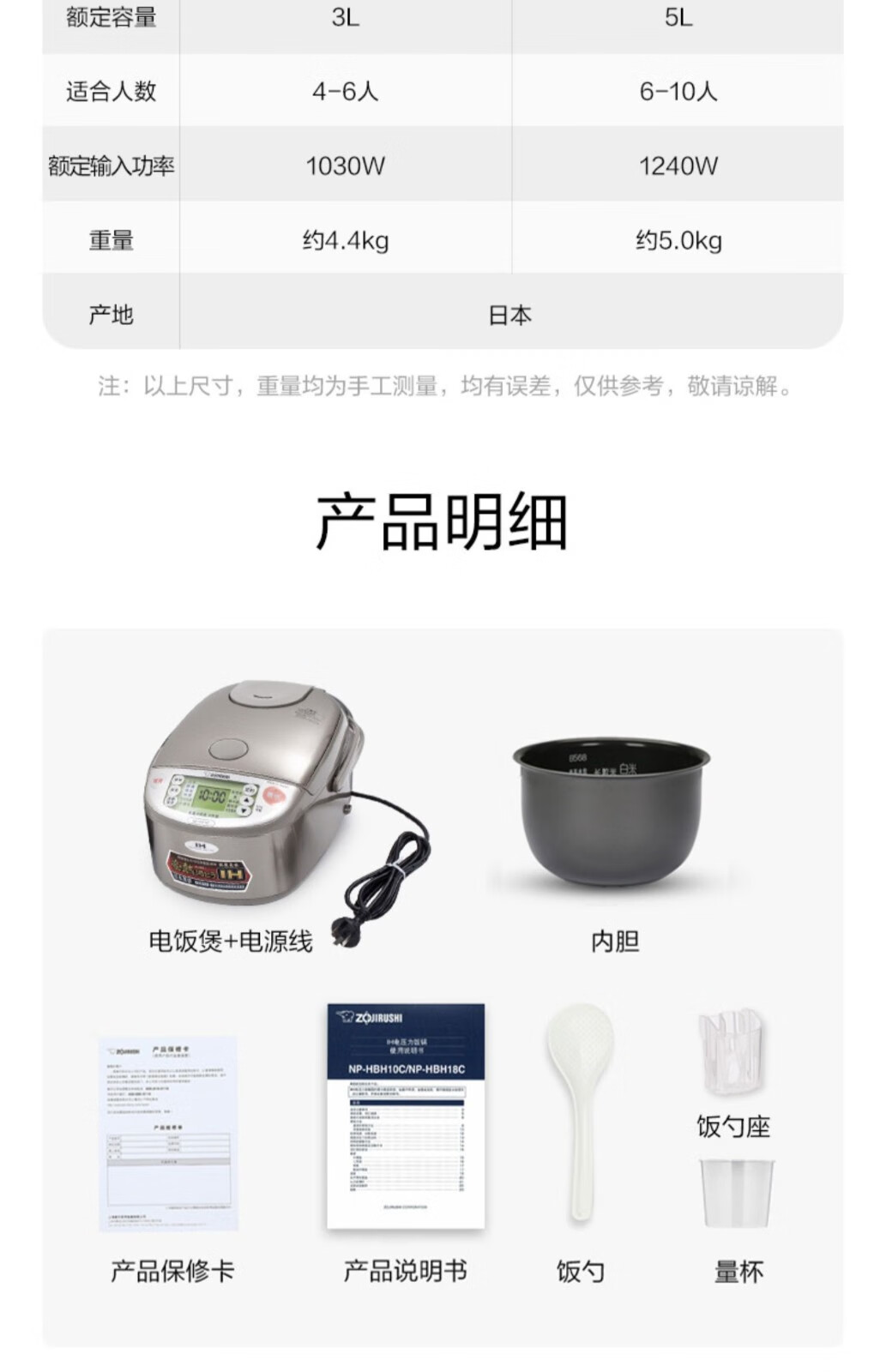 商品名称:象印(ZO JIRUSHI) 电饭煲 NP-HBH10C 3L