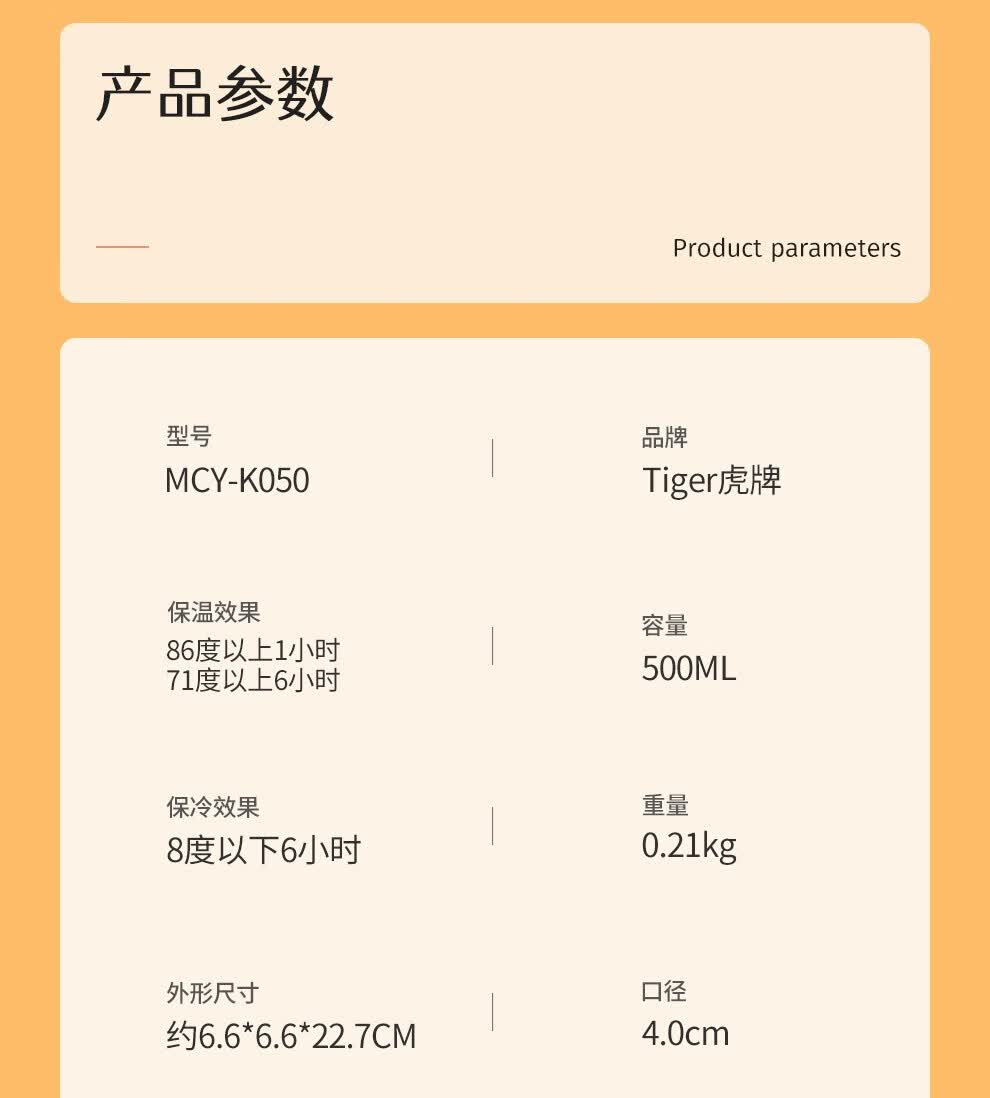 商品名称:虎牌(TIGER) 不锈钢保温杯 MCY-K050 500ml