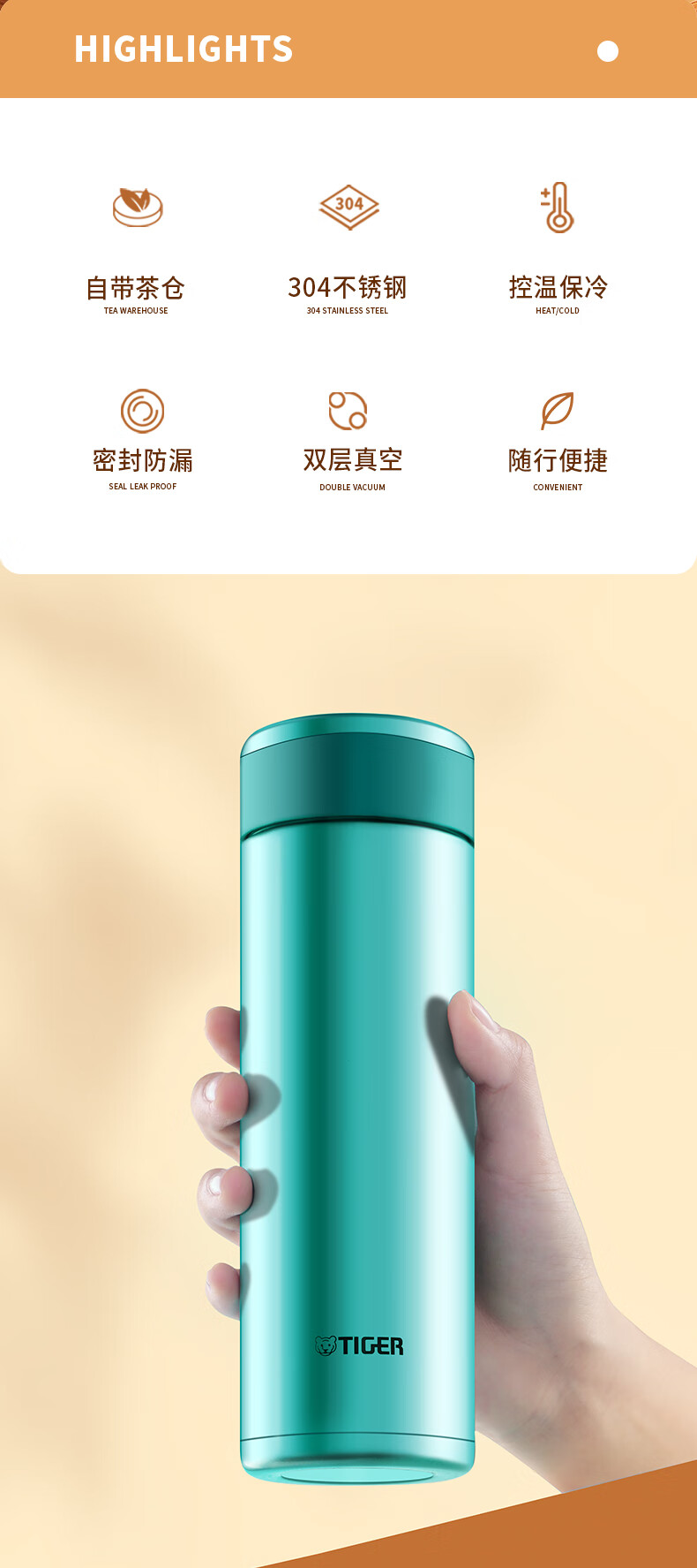 虎牌(Tiger)不锈钢真空杯保温杯 MMP-M40C 400ml