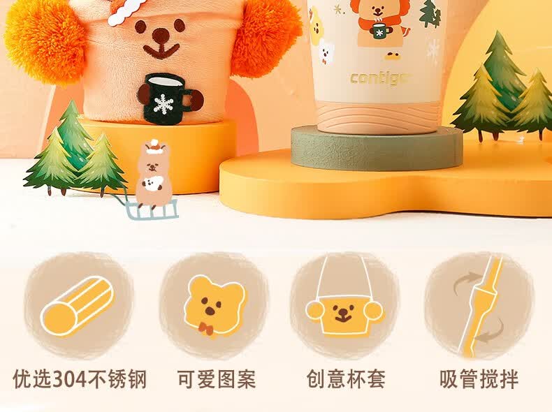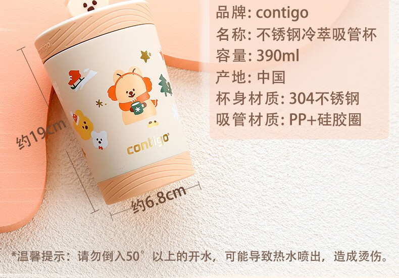 商品名称:Contigo康迪克 不锈钢冷萃吸管杯 冬日袋鼠款 390ml