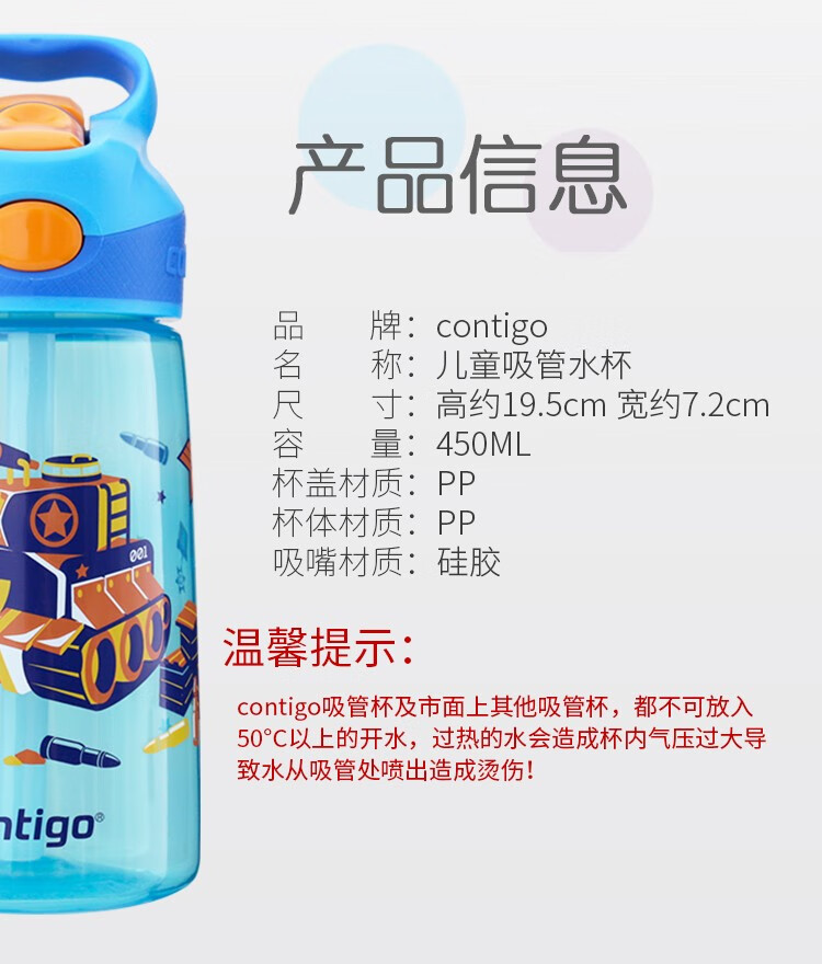 商品名称:contigo康迪克 Striker儿童吸管杯 HBC-STR 450ml