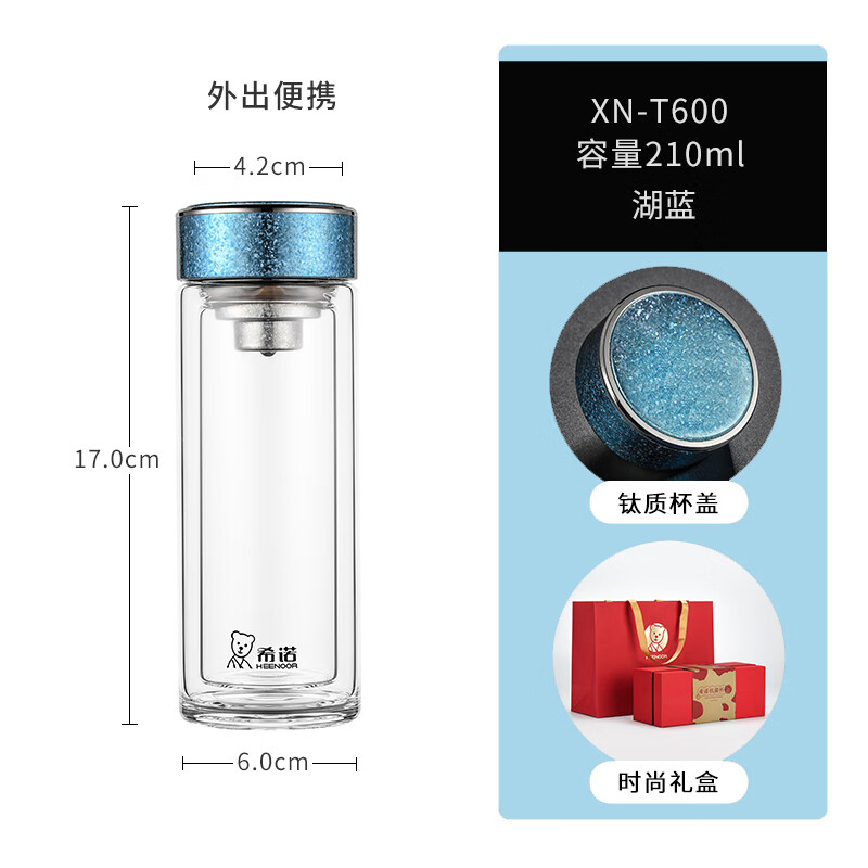 希诺(HEENOOR)双层抗菌玻璃杯(流通款) XN-T600 210ml