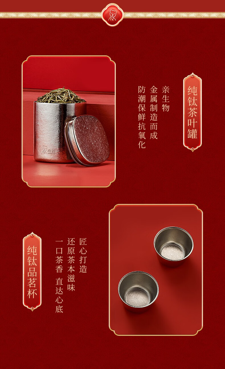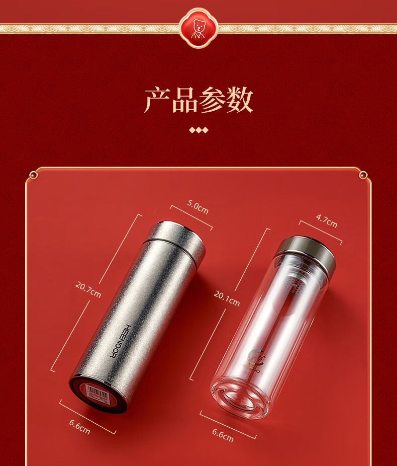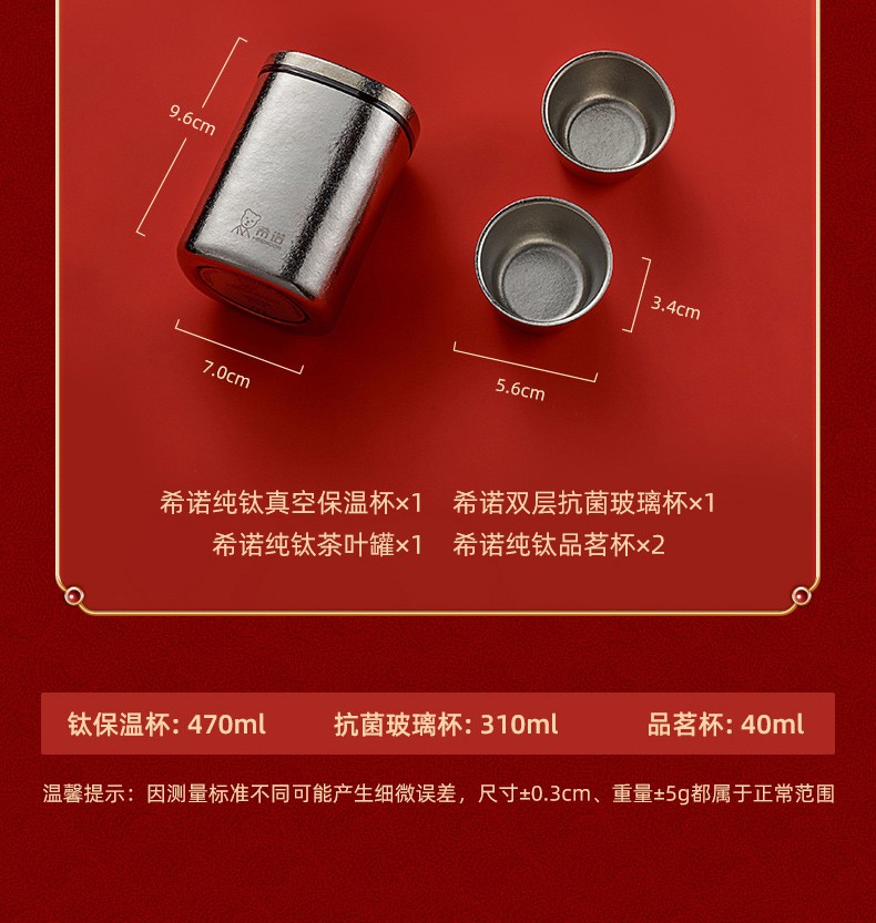 商品名称:希诺(HEENOOR) 至尊礼盒套装内含希诺纯钛保温杯抗菌玻璃杯茶罐品茗杯 至尊套盒A/B/C