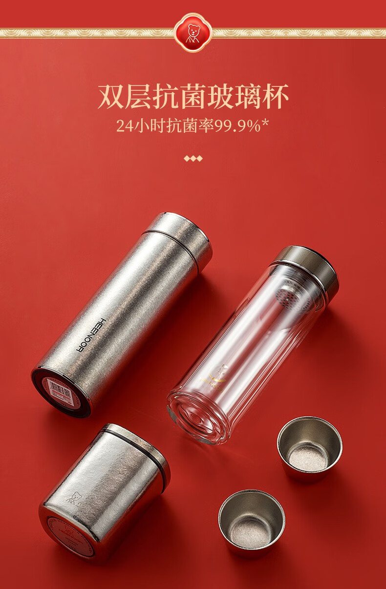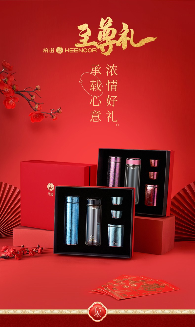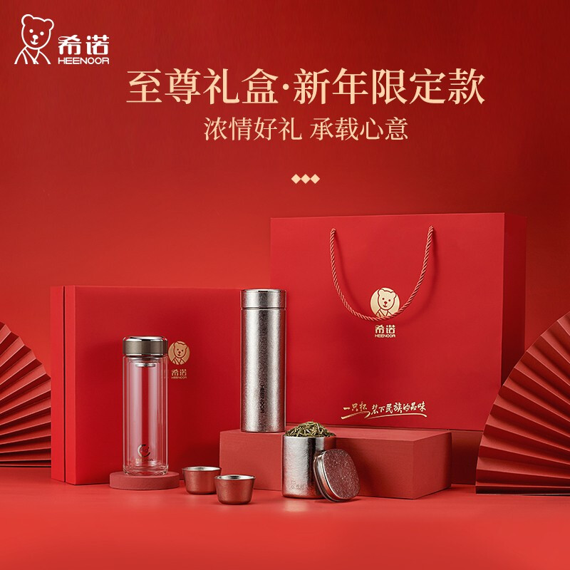 希诺(HEENOOR) 至尊礼盒套装内含希诺纯钛保温杯抗菌玻璃杯茶罐品茗杯 至尊套盒A/B/C