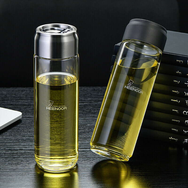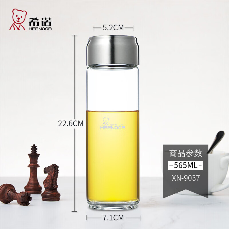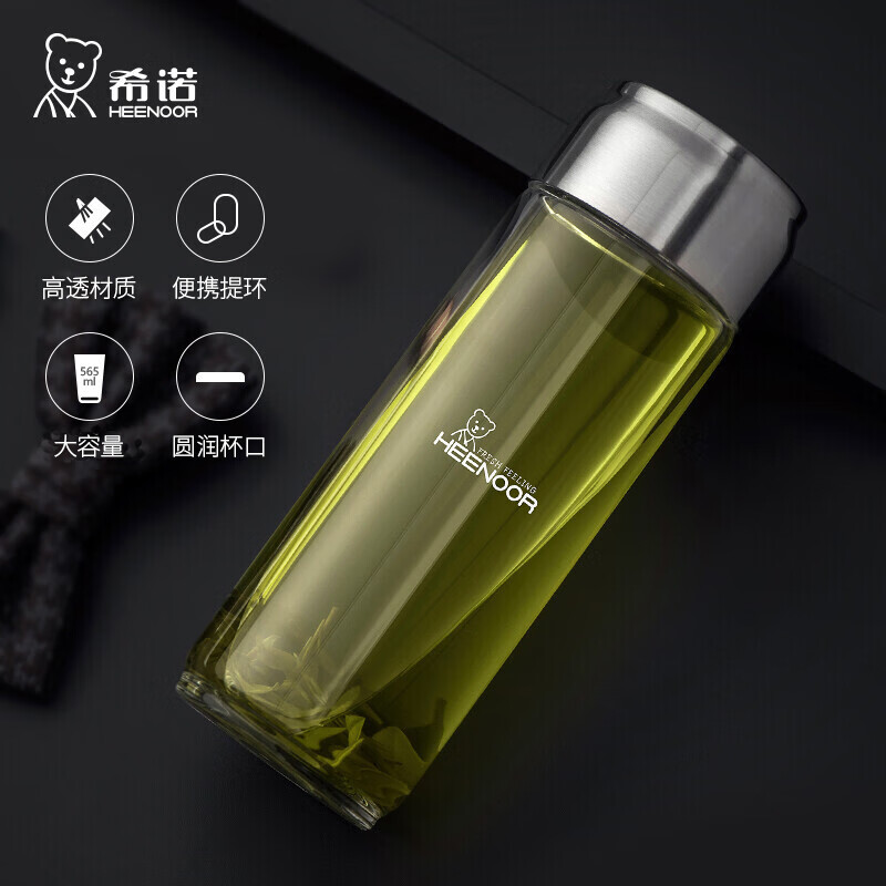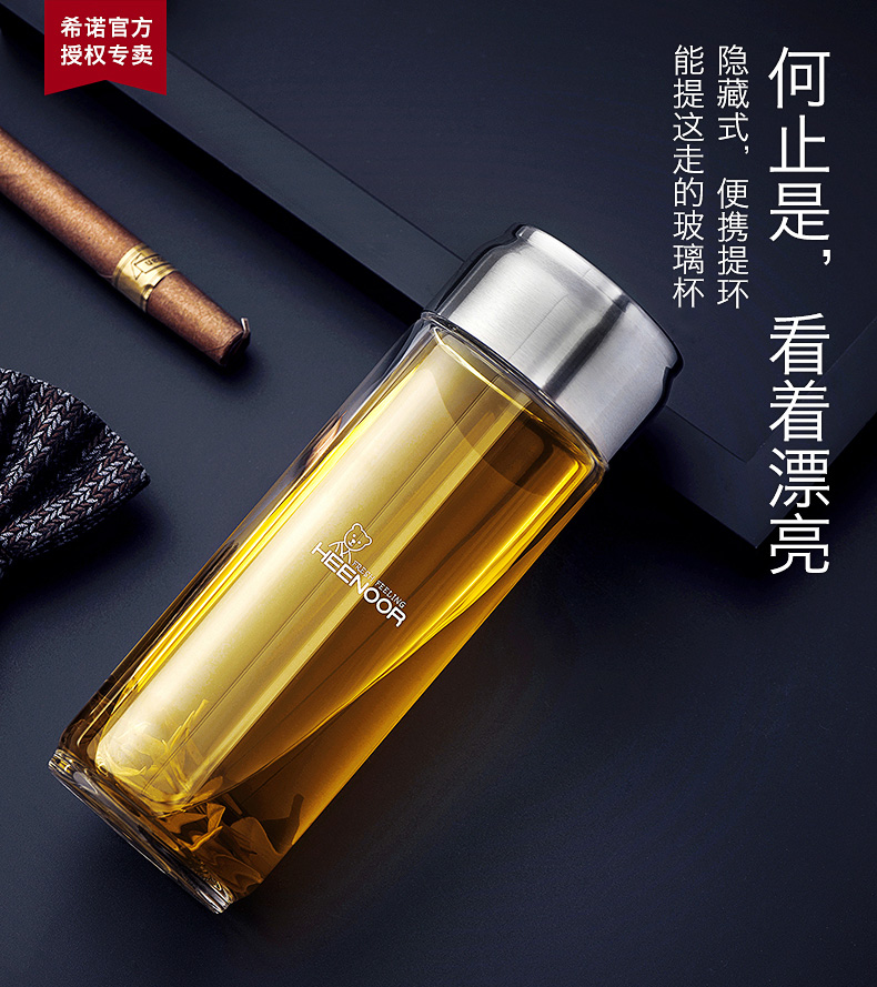 希诺 单层玻璃杯运动便携加厚大容量提环水杯过滤泡茶杯子 XN-9037