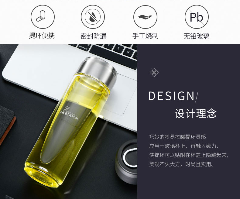 商品名称:希诺 单层玻璃杯运动便携加厚大容量提环水杯过滤泡茶杯子 XN-9037