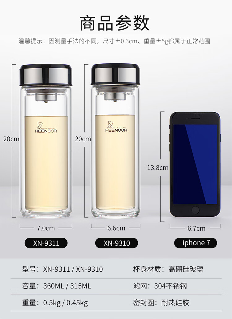 商品名称:希诺(HEENOOR)双层玻璃杯(电商款) XN-9310 315ml