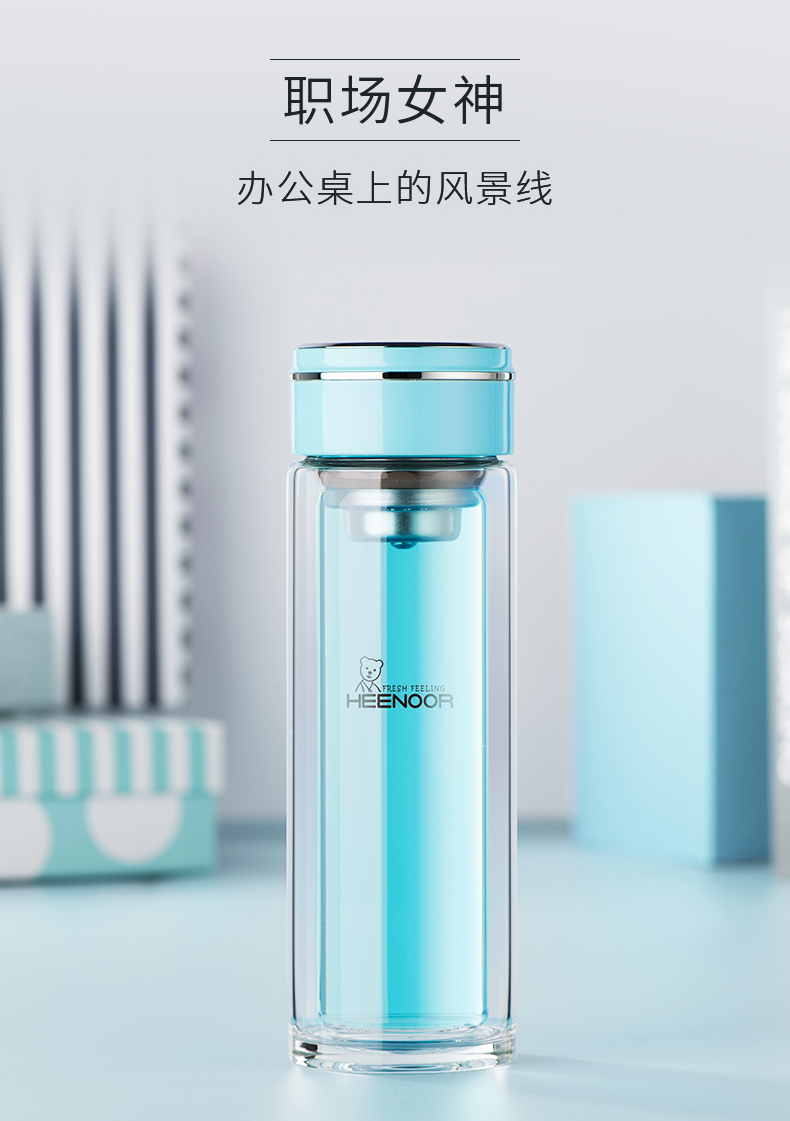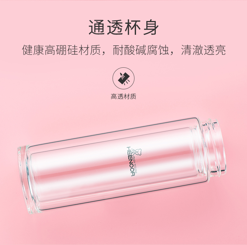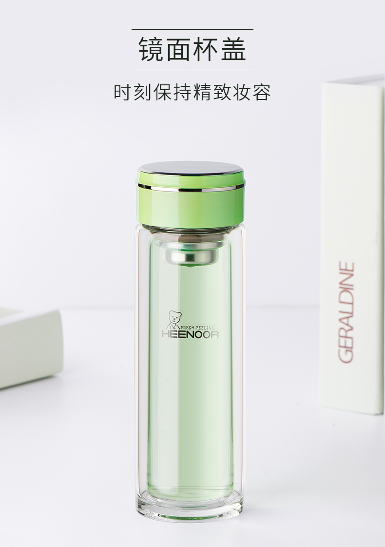 商品名称:希诺 时尚玻璃杯女神花茶优雅双层泡茶杯耐热镜面杯盖便携水杯 XN-9019