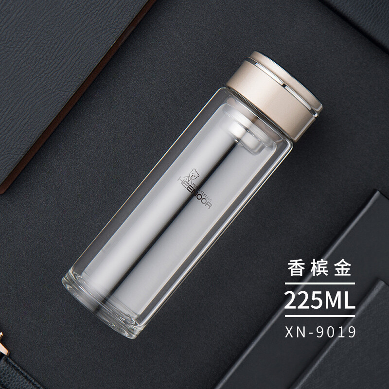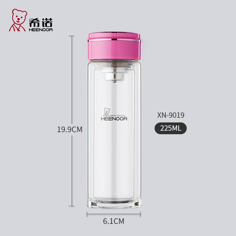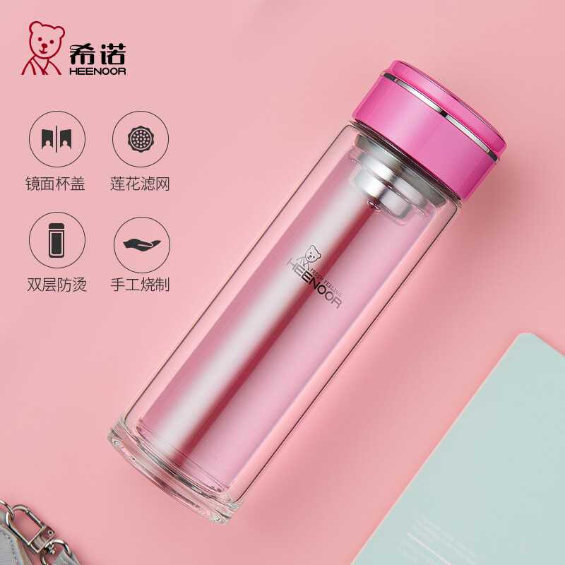 希诺 时尚玻璃杯女神花茶优雅双层泡茶杯耐热镜面杯盖便携水杯 XN-9019