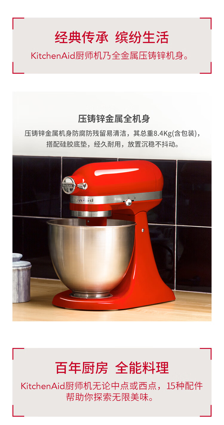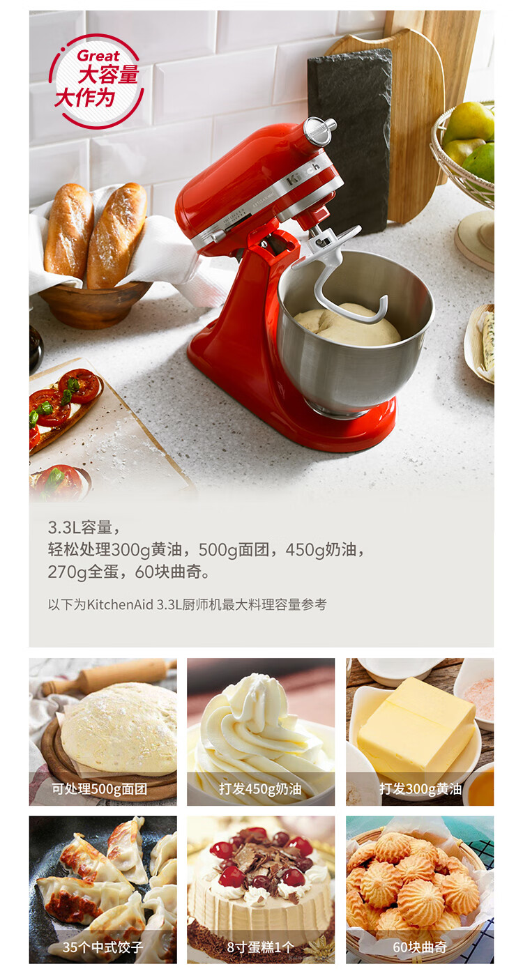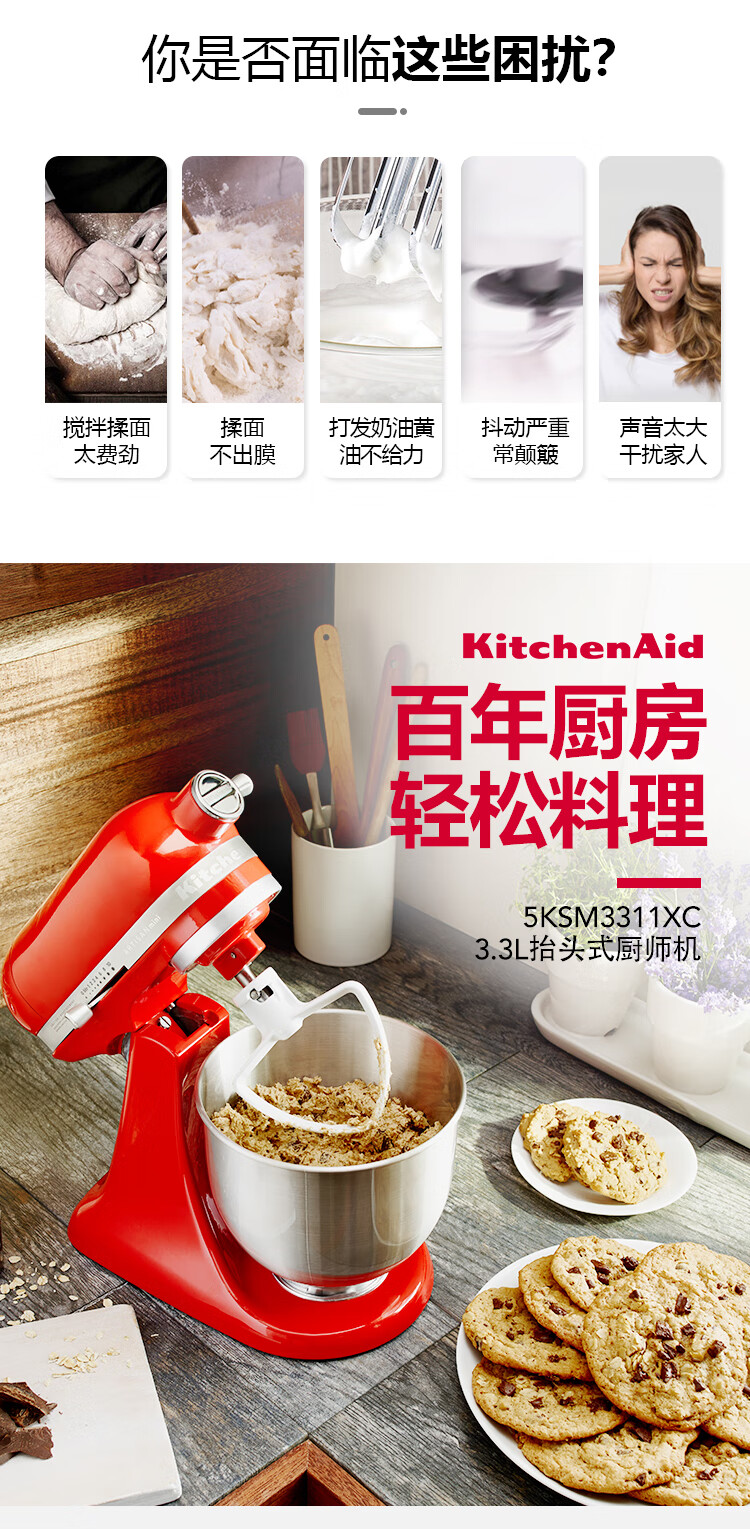 商品名称:KitchenAid/凯膳怡 家用厨师机 5KSM3311XC系列