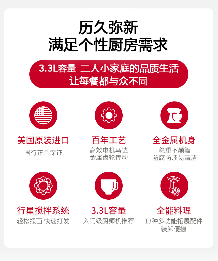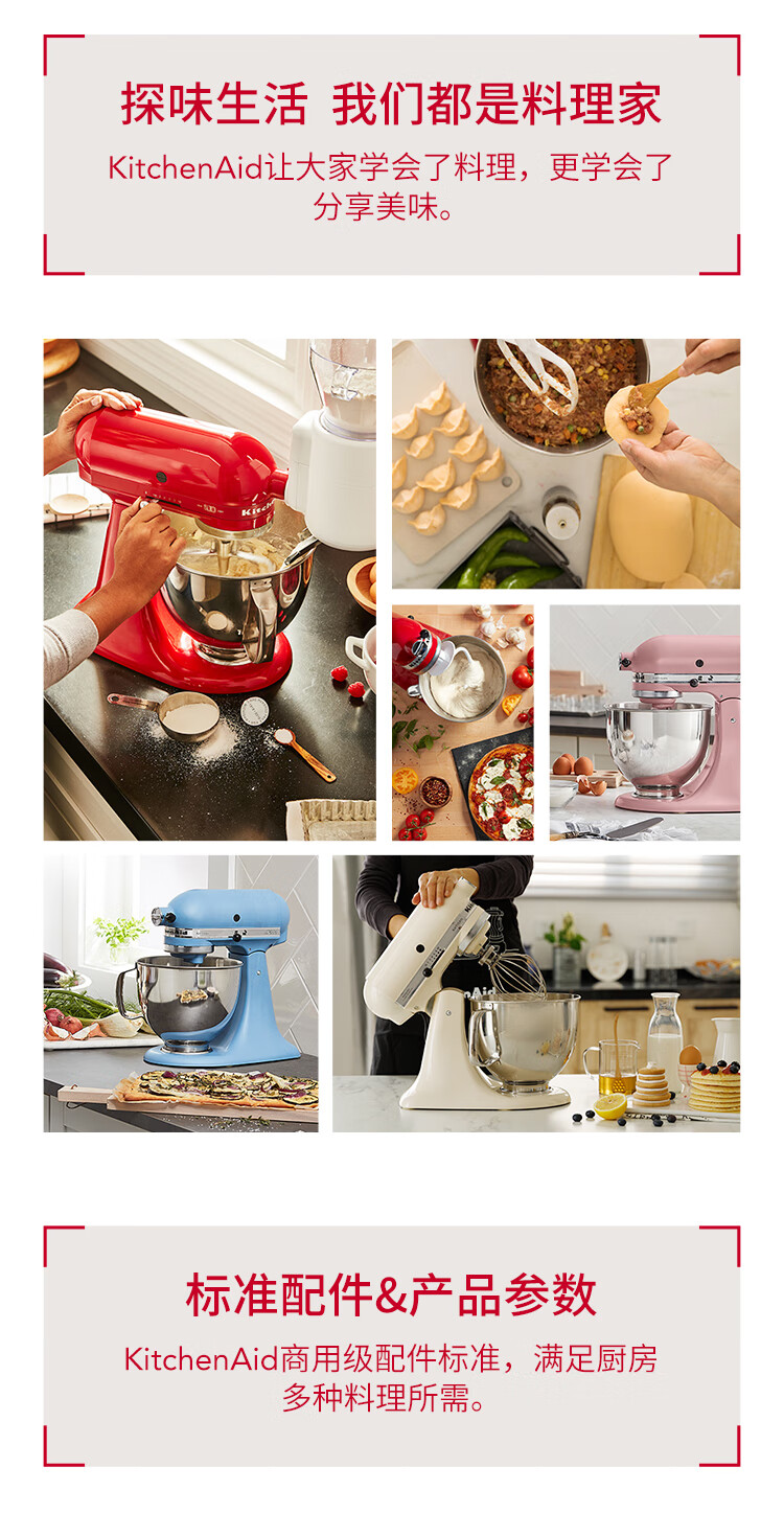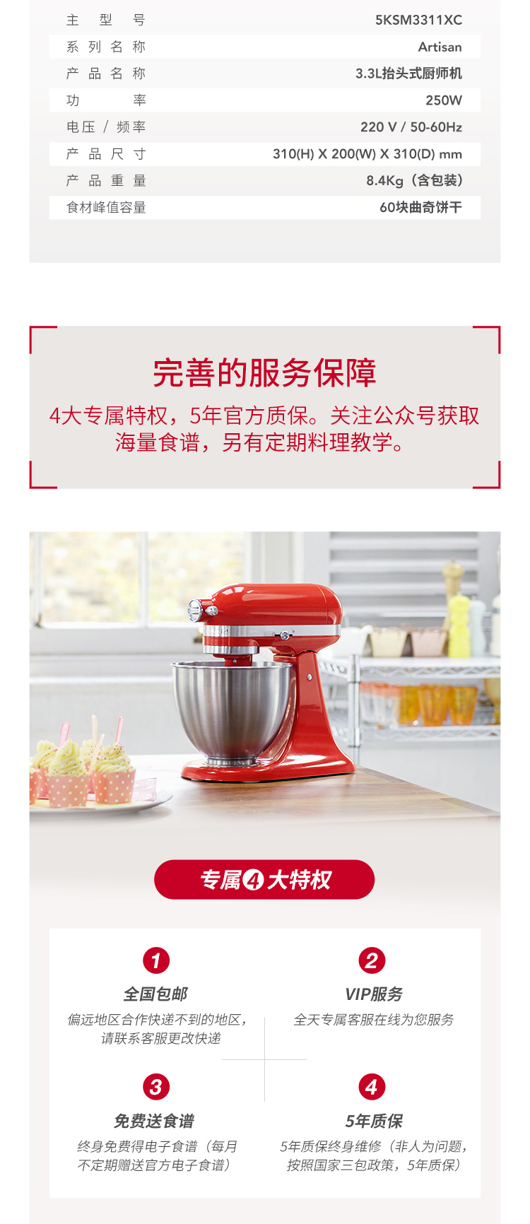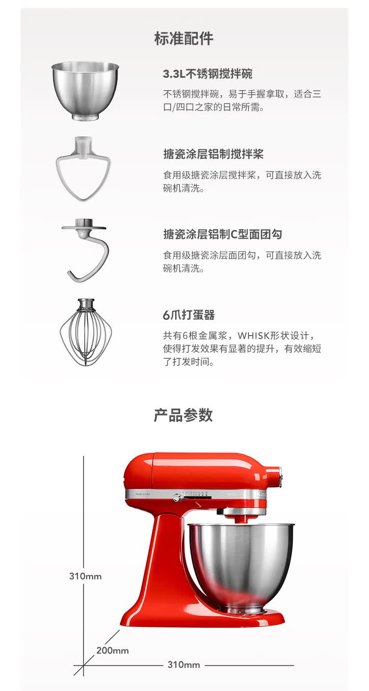 商品名称:KitchenAid/凯膳怡 家用厨师机 5KSM3311XC系列