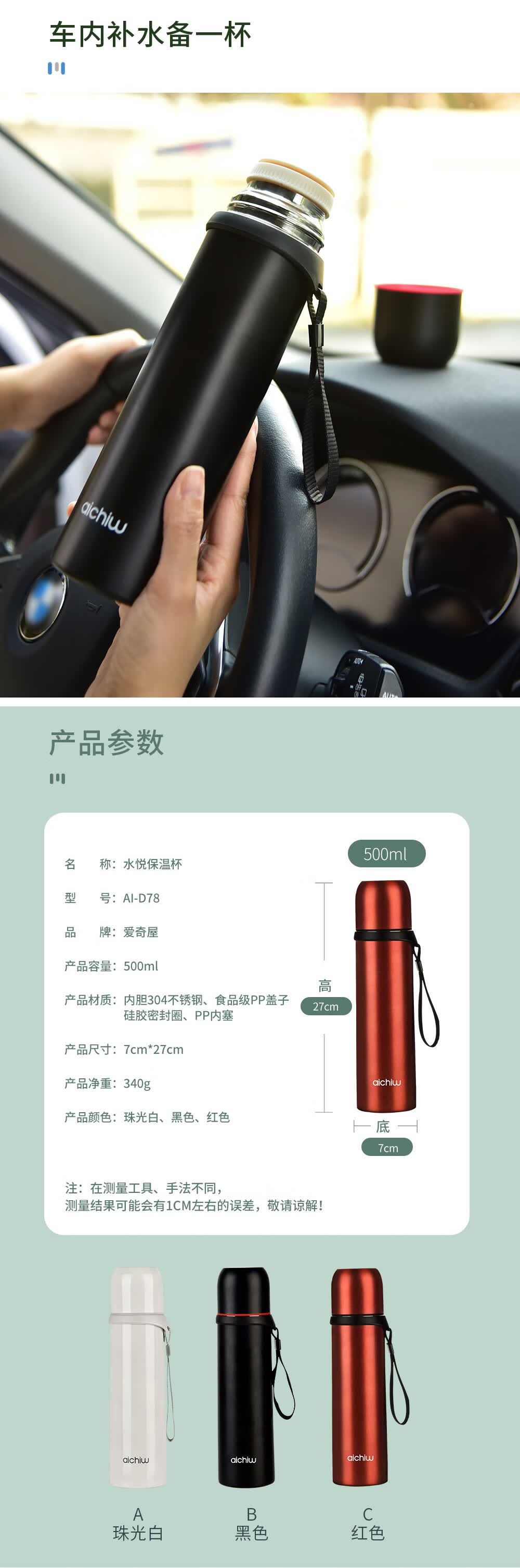 商品名称:爱奇屋(aichiw)水悦保温杯 500ML AI-D78