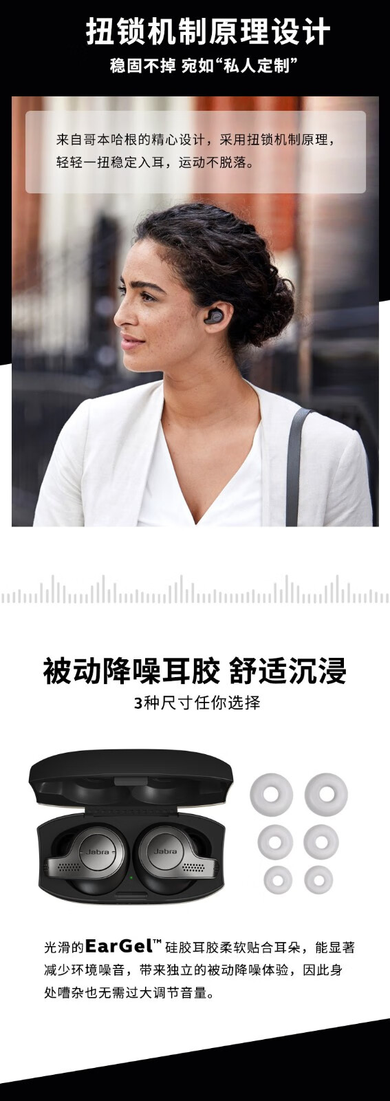 商品名称:捷波朗(Jabra) Elite Active 65t 动感版 真无线入耳式蓝牙运动耳机