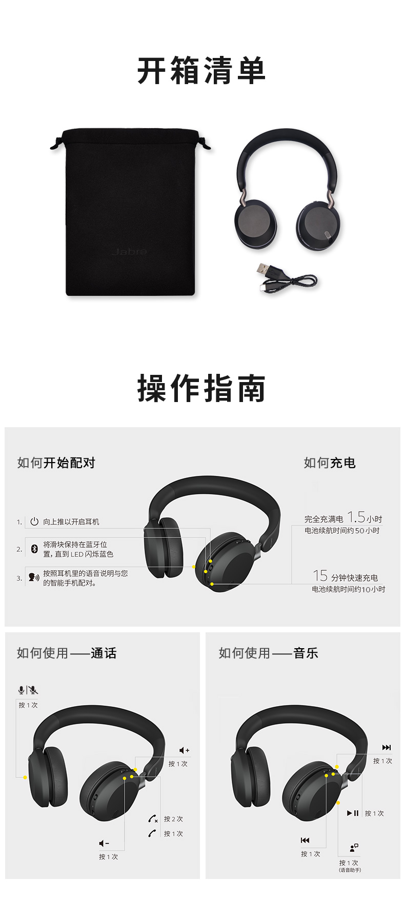 商品名称:捷波朗 Jabra Elite 45h智能降噪蓝牙耳机头戴式