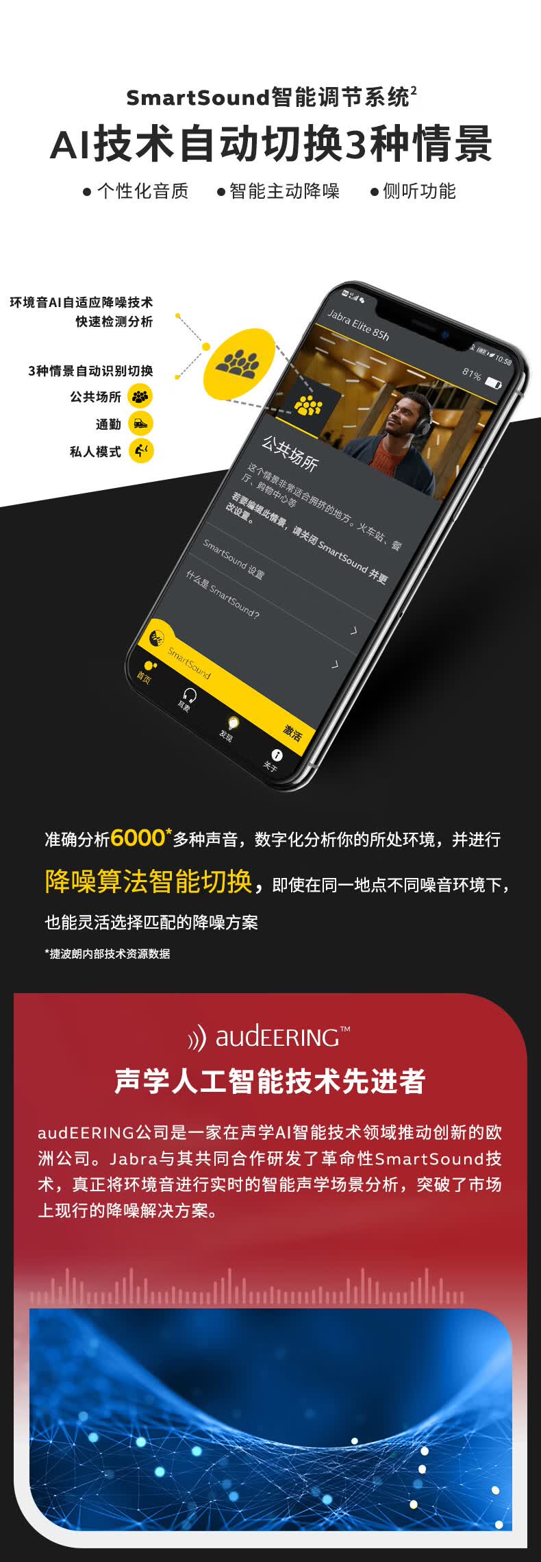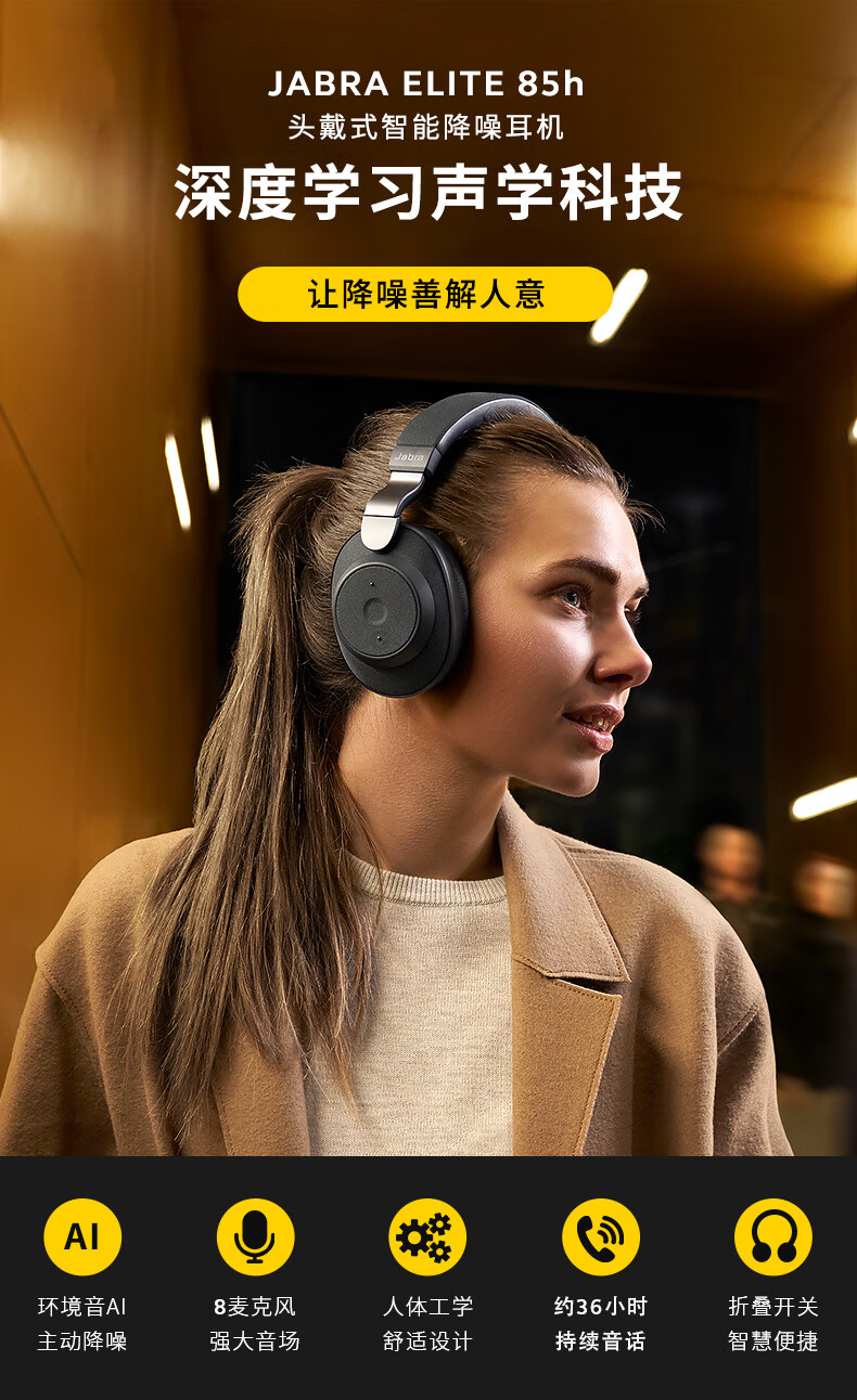 捷波朗(Jabra)Elite 85h 智能降噪蓝牙耳机头戴式