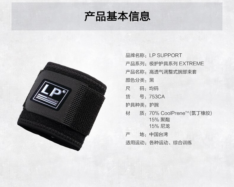 商品名称:LP 高透气调整式腕部束套 753CA