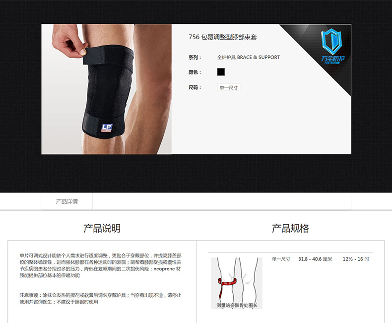 商品名称:LP 包裹调整型膝部束套 756 黑色