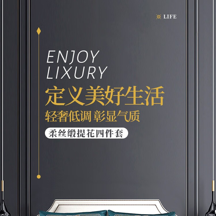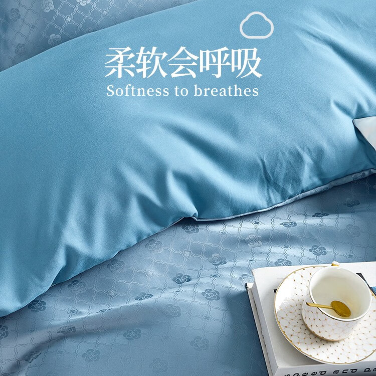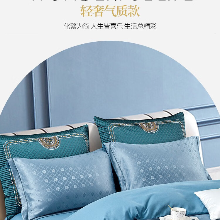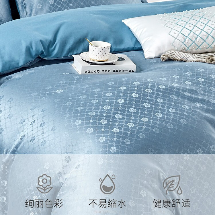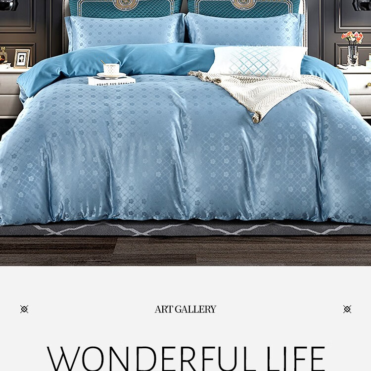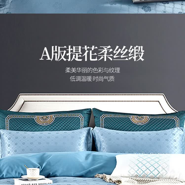 商品名称:路易卡罗(Louis Kellog)柔丝缎提花四件套 威尼斯 蓝 LK-6311