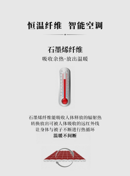 填充物材质 :30%远红外抗菌发热石墨烯纤维+50%6.67D有硅单孔+20%低熔点