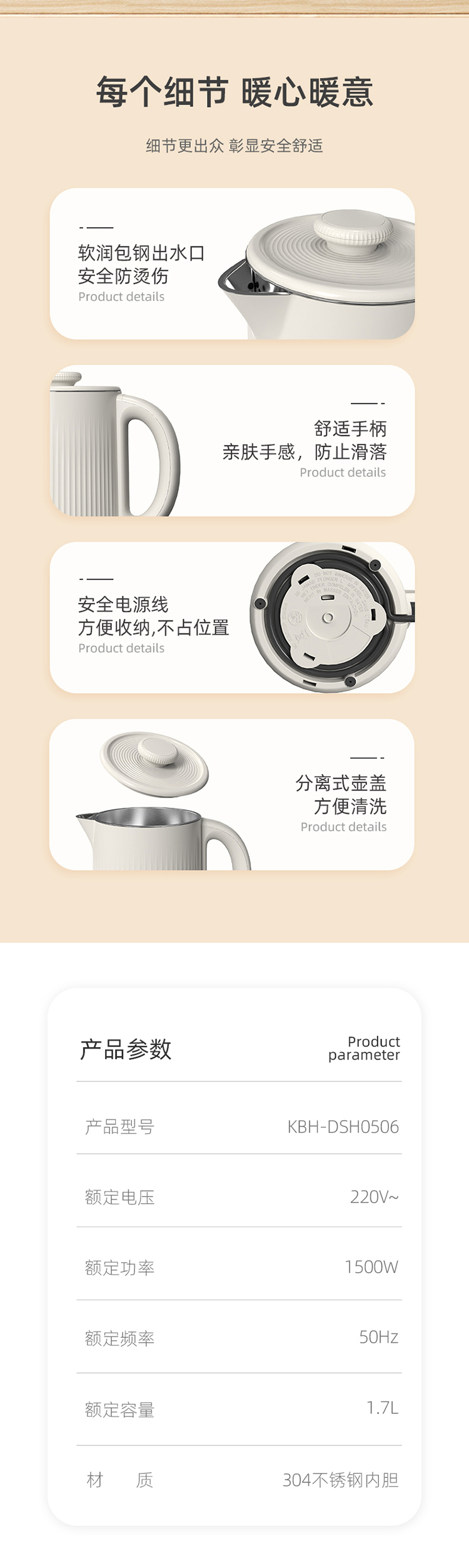 商品名称:康巴赫电热水壶KBH-DSH0506