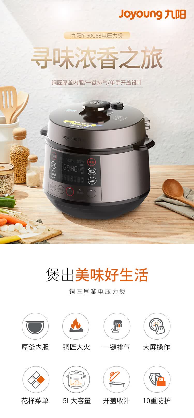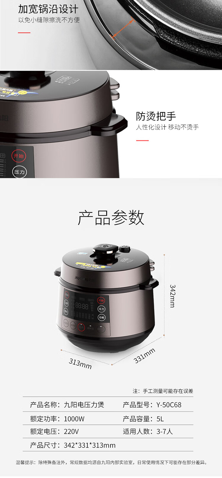 商品名称:九阳 电压力锅电压力煲 Y-50C68 5L